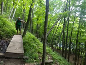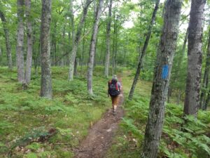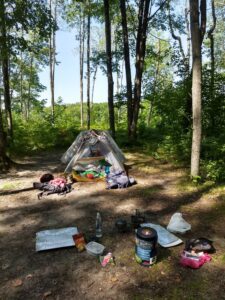 “Just remember that going north from the Upper River Road trailhead it’s seven miles until the next water. That climb at the start is a real beast; at times it felt like I could lean forward and put my hand on the trail in front of me. Finding a camping spot on the Manistee side on a summer weekend can be real pain, a logjam even. I did the loop in 2019 and I hear it’s only gotten worse. We chose to do it in three days so we could camp more and do some fishing, and Sunday afternoon and Monday we had the Manistee trail almost completely to ourselves. If we ever go back it won’t be on a weekend at all.