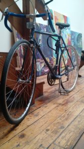 Current projects include kitting out the Bay-Area bike, a vintage Miyata 610 I picked up on Craigslist: I have new brake hoods, cables & housing, velox plugs, and interrupter levers en route from Velo Orange, a rack on the way from REI, and some cork tape too. I’m usually partial to the brown leather saddle and gum-hoods look, but am going black leather & hoods (eventually) with dark army green tape to go with the dusky metallic blue and silver paint scheme- her paint is pretty rough, and someone rattle-can “fixed” the fork, but par for the course for a city bike, and I won’t cry when I inevitably add to the patina with some “beausage” of my own. Saving up for steel fenders and a Brooks Flight, hopefully, but probably first a taller stem before all the other front-end goodies can go on there.