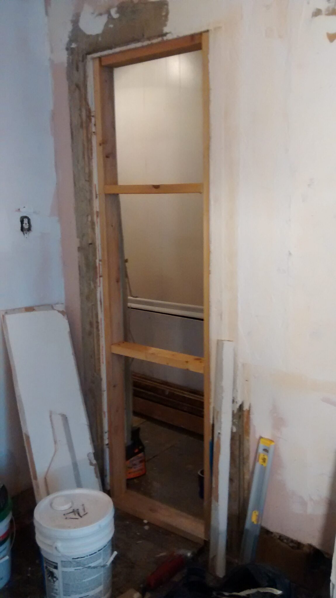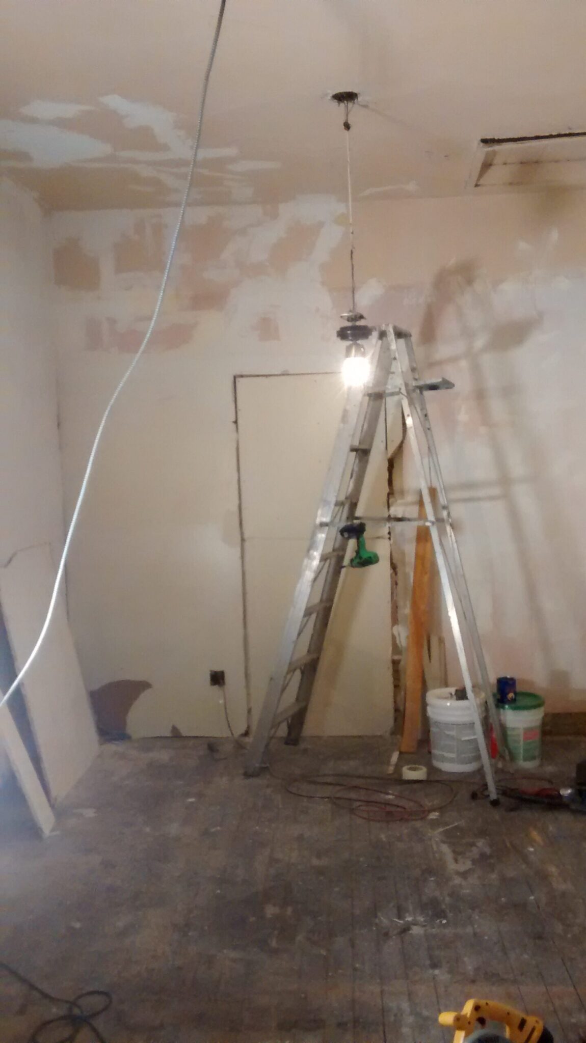So. Much. Frosting. I mean spackle. Two and a half buckets, almost all in this room. But it’s going to look gooood. Comparatively, at least, and after a little trim work- need baseboards for this half of the room and some crown molding for the other side to mask the line of the old ceiling height where the drywall stops.