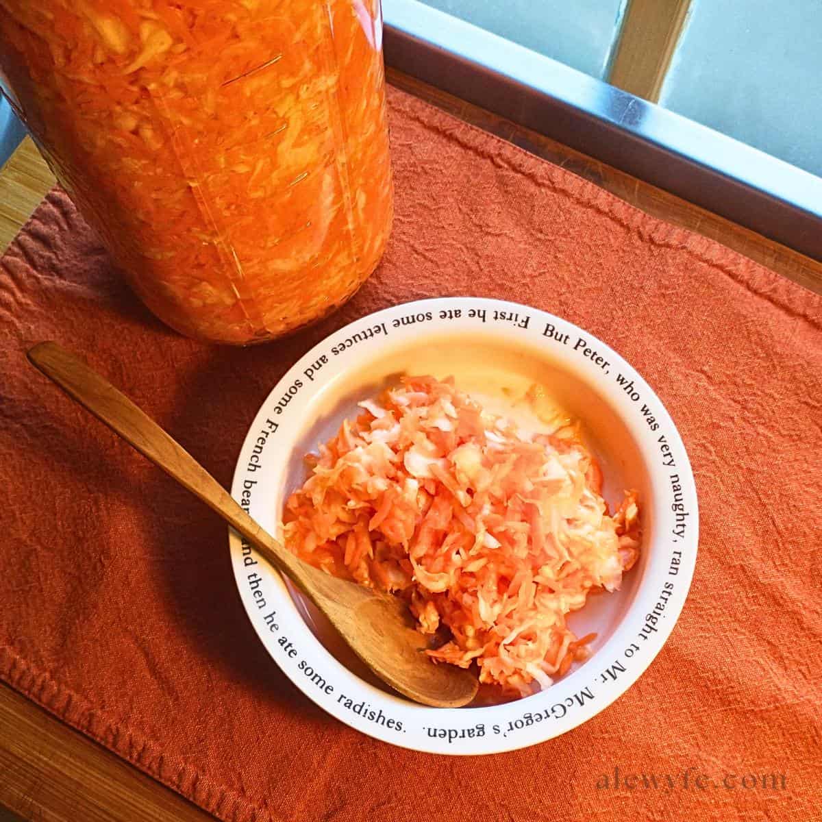 If you haven’t made sauerkraut before and aren’t already familiar with the equipment and techniques, check out our introductory post about making homemade sauerkraut to learn more about the best and easiest ways to make sure your batch of lacto-fermented carrot slaw is a success!