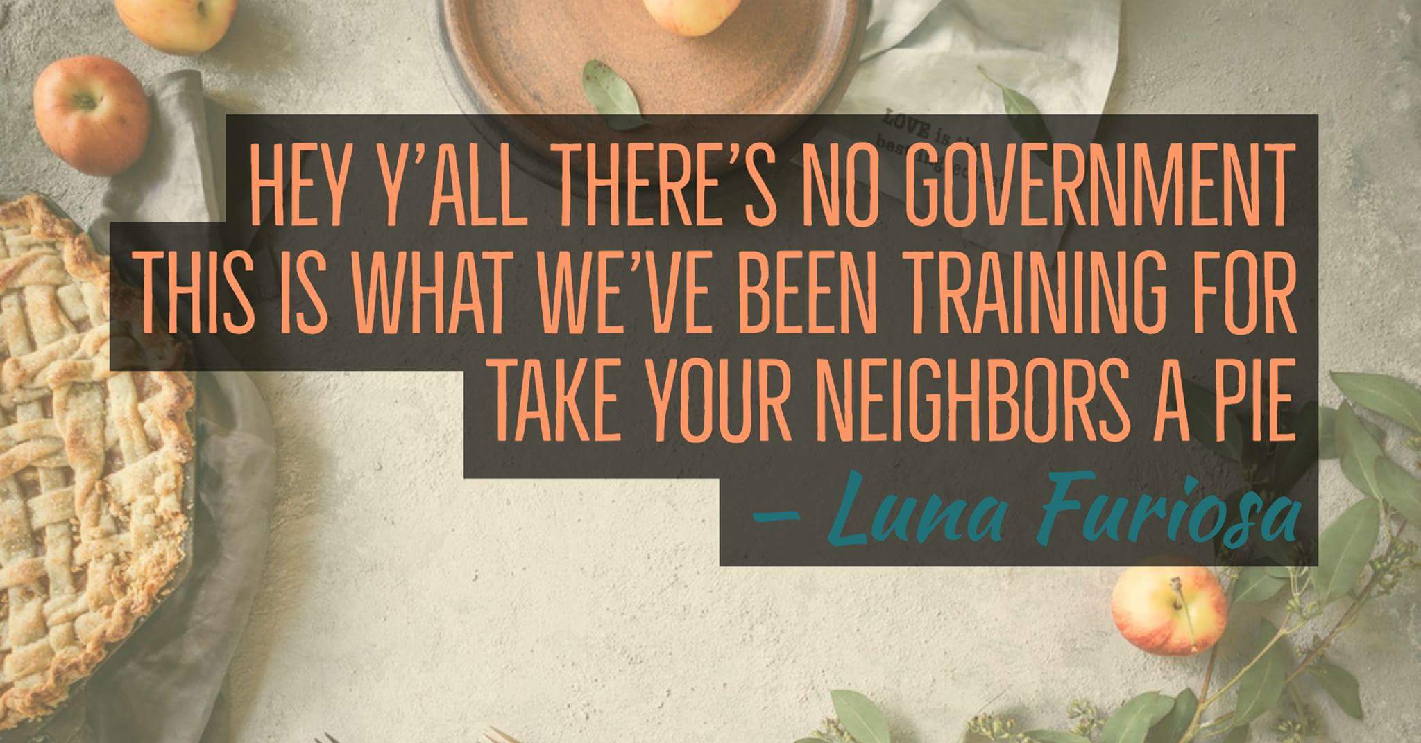 Take care of each other y’all… We’re all we can count on. Build community. Feed love and kindness, wherever you find it.
