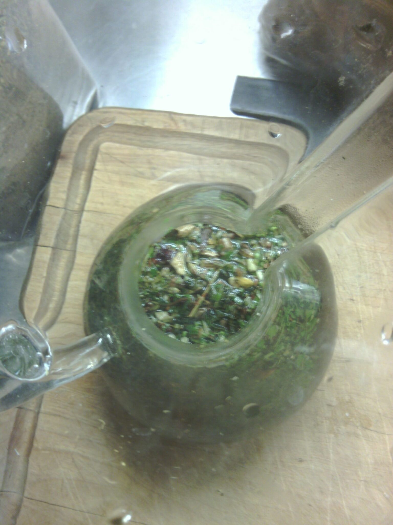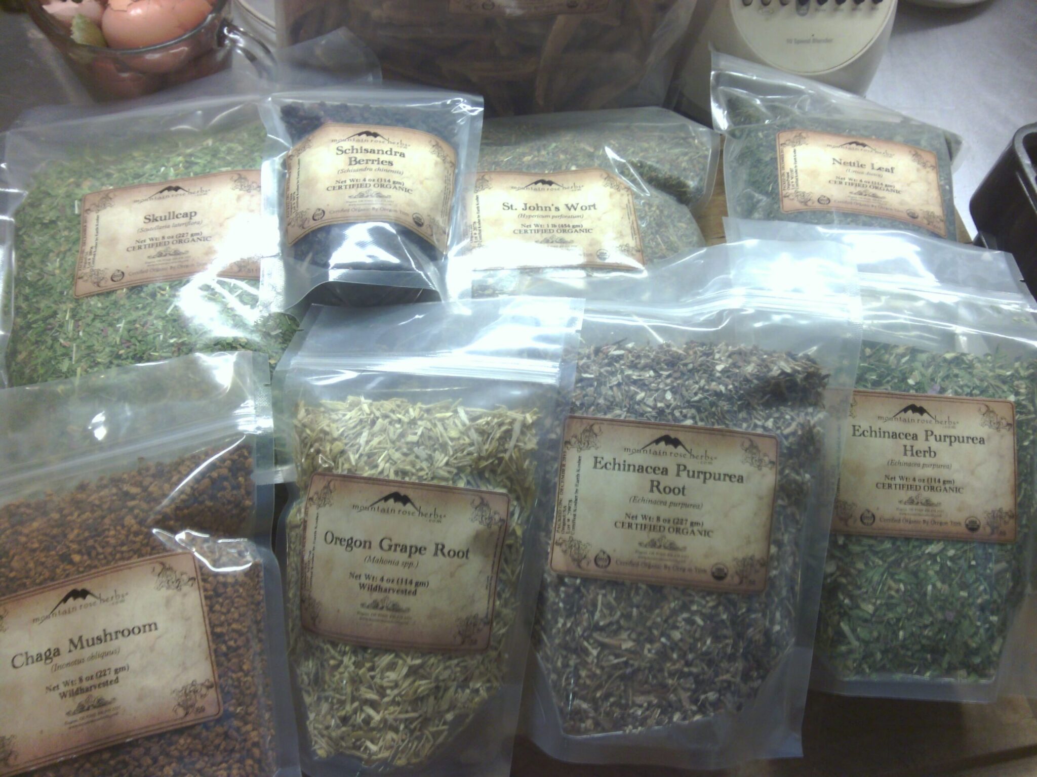 Don’t worry, it’s the good kind. I’ve had a giant box of herbs sitting on my kitchen table all week, ordered to make teas and tinctures with until the farm is ready to grow enough to supply the apothecary. I was excited when they arrived, and unpacked all the bags with their beautiful colors and textures… then put them away again.
