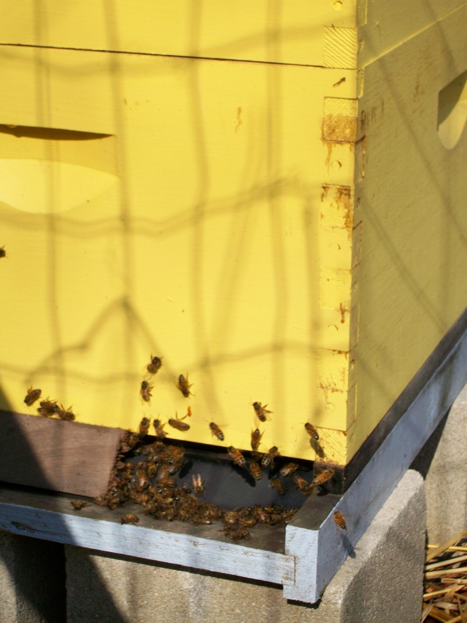 The bees are back! They’ve been buzzing around their hive entrance the past two days, getting some fresh air and sunshine before returning purified to the warmth of the hive. I’ve missed them. I am very much relieved to see that they have thus-far survived the winter, mild though it has been!