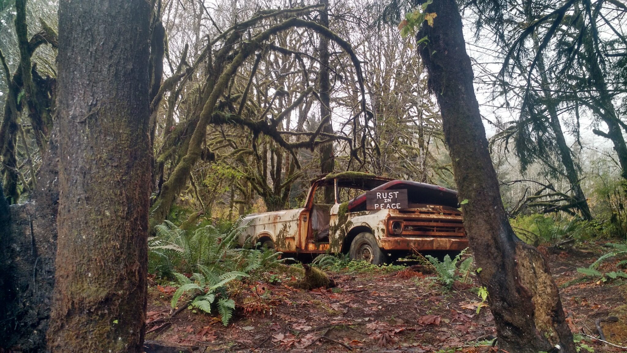 At first (or second, or maybe third) light we got back on the road to finish the journey to the park. Enjoy some local color, signage, and scenery… My mom is from Olympia (or technically, Tenino… or was it Tumwater? Or Shelton? I’m not sure, she moved around a lot… but anyway, tiny), although I’ve only visited there once and just an overnight stop in Olympia for a White Stripes concert on a ten day Greyhound bus pass (during which we saw them play in 5 towns and two countries, ah, youthful folly… that was a ridiculous trip but the kind of thing that sounds like a good idea when you’re barely not a teenager anymore). This trip was definitely another window into the place where she spent the early parts of her childhood. And I’m from the Ozarks, I have SEEN some things on some very back-roads…