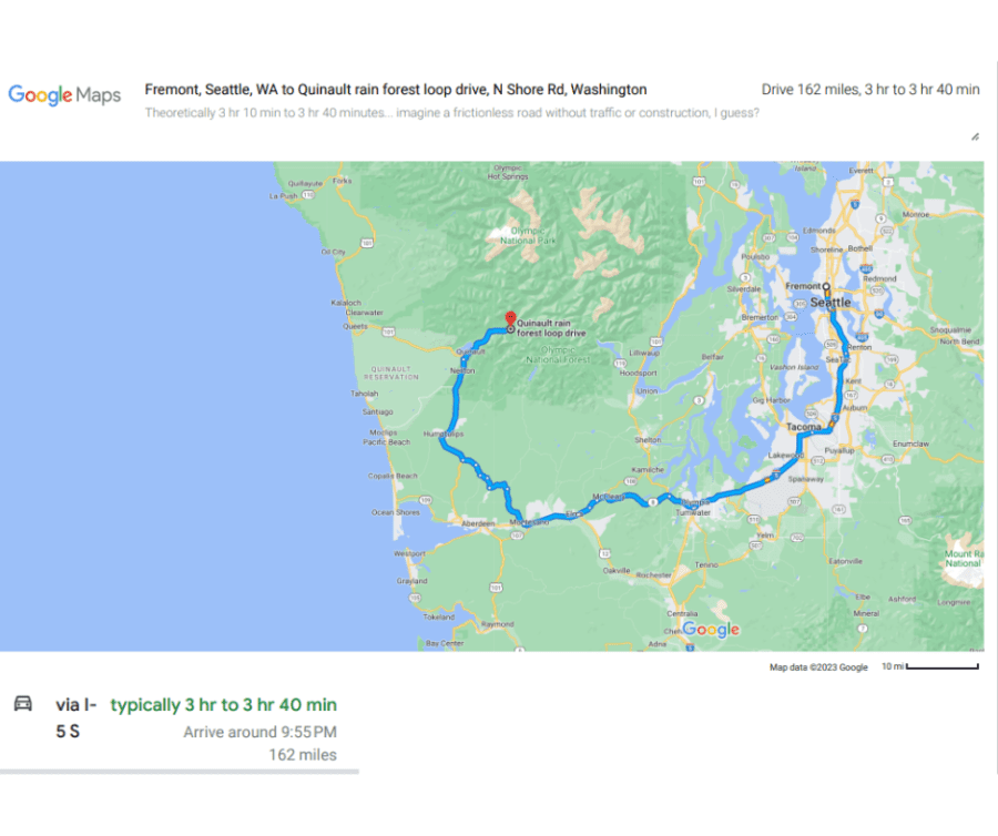 Fremont, Seattle, WA to Quinault rain forest loop drive – Google Maps